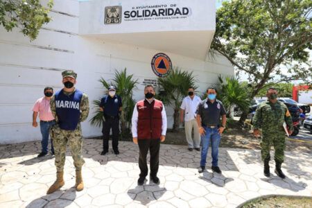 Por parte de los funcionarios del gobierno de Solidaridad, se informó sobre el trabajo que se está realizando a través de la Secretaría de Protección Civil, Prevención de Riesgos y Bomberos, la cual ha abierto dos refugios anticiclónicos, uno ubicado en el CONALEP de Playa del Carmen y el segundo en el Centro de Atención al Migrante de Puerto Aventuras.