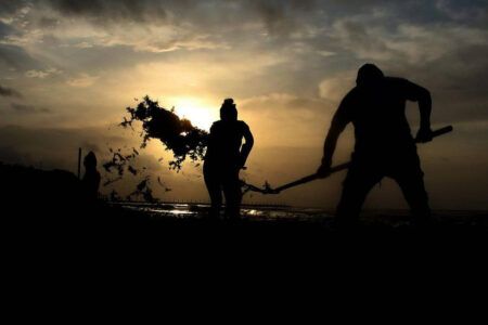 Dichas acciones se llevaron a cabo del muelle Navega a playa el Recodo, en donde, con el apoyo de bieldos, rastrillos, carretillas, se logró retirar de manera conjunta aproximadamente 180 toneladas.