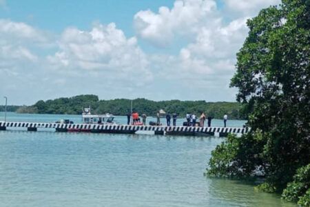 Luego de su aseguramiento, el narcosubmarino fue trasladado al muelle del Club Náutico de Chetumal bajo estrictas medidas de seguridad.
