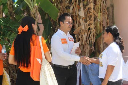 El abanderado naranja ha sido bien recibido por las familias solidarenses en colonias como Palmas 2, Misión de las Flores, Cataluña, Tumben Chilam, La Guadalupa y El Petén, entre otros.