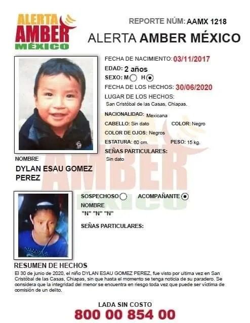 Buscan a Dylan, niño Tzotzil de dos años visto por última vez en compañía de otra menor