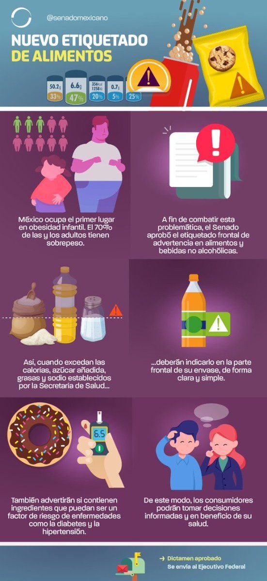 Aprueba Senado nuevo etiquetado de bebidas y alimentos
