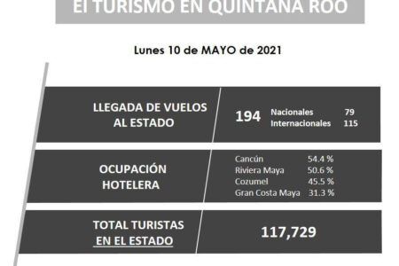 Con un total de 117 mil 729 turistas en total, son 194 los vuelos que han aterrizado en los aeropuertos de Quintana Roo de los cuales, 115 son a nivel internacional y 79 de diferentes estados de la República mexicana.