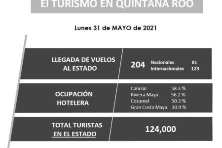 Por este tema, en el Caribe mexicano se ha registrado la entrada de 204 vuelos de los cuales 123 son de destinos internacionales y 81 nacionales, además del movimiento de cifras en temas de ocupación hotelera en donde Cancún, se mantiene como primero con 58. 3 por ciento, seguido de la Riviera Maya con 56. 2 por ciento, Cozumel con 50. 3 por ciento y Gran Costa Maya con 30.9 por ciento.