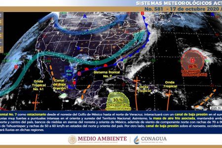Lluvias fuertes le esperan a Quintana Roo este sábado, al igual que en el Golfo ce México y el Pacífico sur.