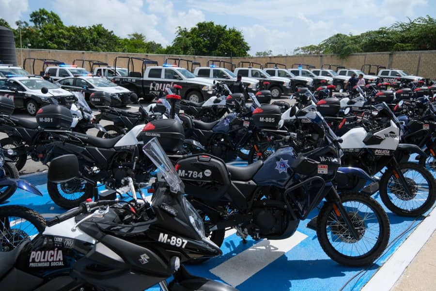 Mara Lezama entregó las llaves de 66 vehículos tipo patrulla y 226 armas para uso de las y los elementos de la Secretaría de Seguridad Pública y Tránsito de Benito Juárez. El parque vehicular incluye 35 pickups, 20 motocicletas, 4 cuatrimotos, 6 sedanes y 1 ambulancia, adicionalmente el Ayuntamiento sumó 14 motocicletas para ampliar las áreas de vigilancia.