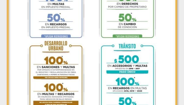 Anunció que la dirección de Ingresos ofrece el 50 por ciento en recargos y 100 por ciento en multas en impuesto predial, mientras que Catastro otorga 50 por ciento de descuento en los derechos de cambio de propietario y cambio de condición.