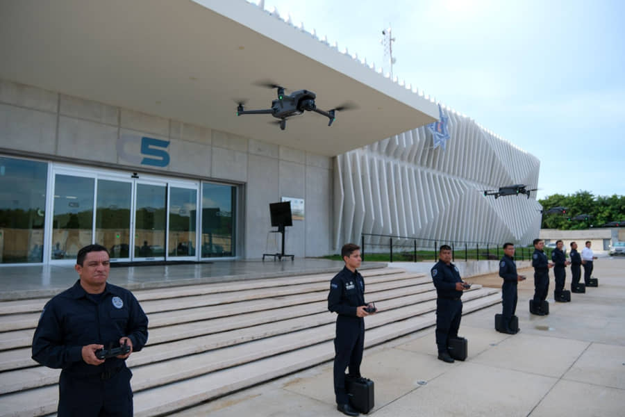 La gobernadora de Quintana Roo, Mara Lezama, estuvo en el Complejo de Seguridad C5 y observó la capacitación que se proporciona a los elementos de la Secretaría de Seguridad Ciudadana que se encargarán de manejar estos equipos aéreos. Forma parte de la capacitación permanente que reciben en la corporación.
