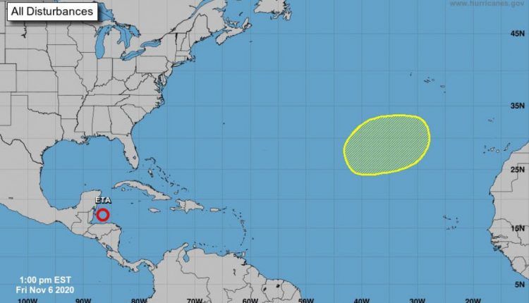Alertan por nueva perturbación en el Atlántico. El Centro Nacional de Huracanes, NHC por sus siglas en inglés, emitió la tarde de este viernes 6 de noviembre una alerta a cinco días sobre una perturbación tropical en el océano Atlántico.