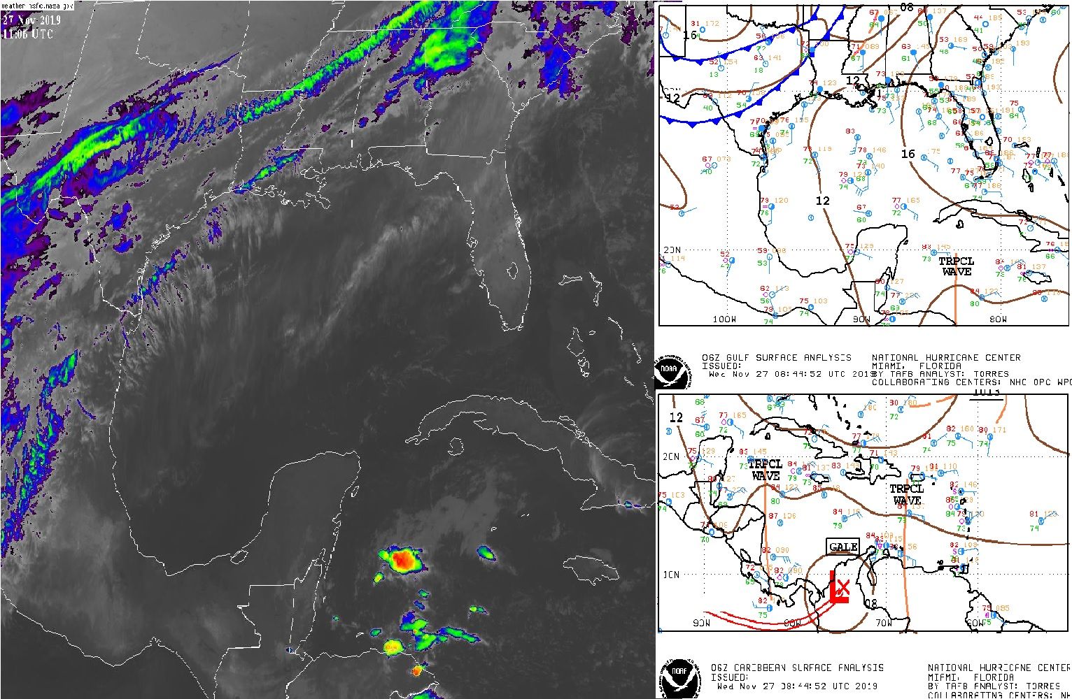 11.-BACALAR. – Medio Nublado a Nublado, lluvias con algunos chubascos y posibilidad de actividad eléctrica, caloroso a muy caluroso, Viento variable fijándose al este por la tarde de 10 a 20 kph., con algunas rachas ocasionales fuertes en área de tormenta.