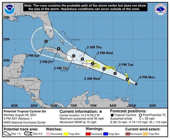 El Centro Nacional de Huracanes NWS de Miami Florida, informó que la depresión tropical se acerca a las Antillas menores con pronóstico de convertirse en tormenta tropical.