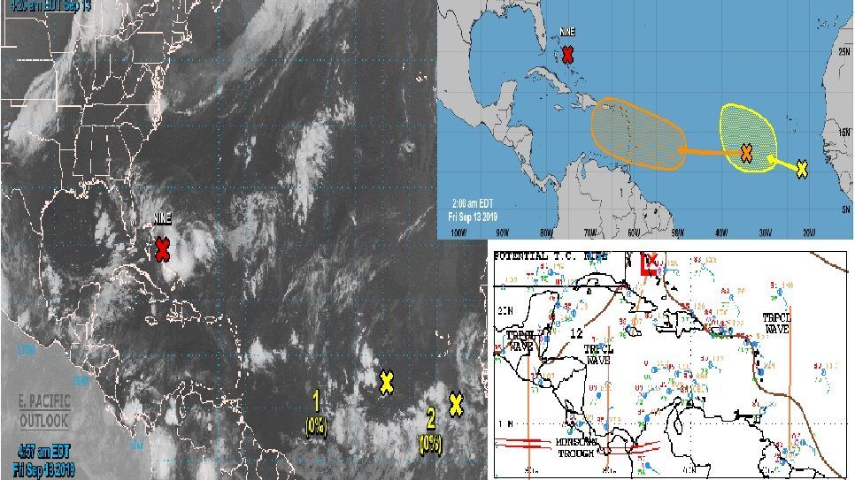 2.- Ondas Tropicales del Mar Caribe localizadas una la No. 38 sobre el occidente de Guatemala C.A., más al sur en el Océano Pacifico; la otra en el occidente de la Isla de Jamaica hasta el occidente de Panamá C.A.; ambas se mueven al oeste-suroeste; no presentan condiciones favorables de evolucionar en un sistema tropical, según información del Centro Nacional de Huracanes de Miami, Florida, E.U.A.