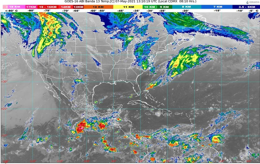 Asimismo, se pronostican descargas eléctricas en Campeche, Chiapas, Chihuahua, Ciudad de México, Coahuila, Colima, Durango, Estado de México, Guerrero, Jalisco, Michoacán, Nayarit, Oaxaca, Puebla, Quintana Roo, San Luis Potosí, Sinaloa, Tabasco, Tamaulipas, Veracruz, Yucatán y Zacatecas.