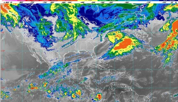 Península de Yucatán: Cielo medio nublado con chubascos en Quintana Roo, además de lluvias aisladas en Campeche y Yucatán. Ambiente cálido y viento del noreste de 15 a 30 km/h.