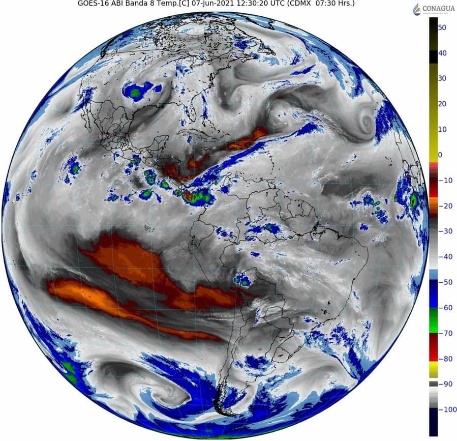 Por otra parte, canales de baja presión en combinación con la entrada de humedad del Océano Pacífico, producirán chubascos y lluvias puntuales fuertes en estados del noroeste, occidente y centro del territorio nacional. Adicionalmente, prevalecerá ambiente diurno muy caluroso con temperaturas superiores a 40°C en Baja California, Sonora, Sinaloa, Coahuila, Nuevo León, Tamaulipas, San Luis Potosí, Veracruz, Tabasco, Campeche y Yucatán.