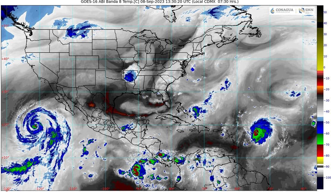Canales de baja presión en el sureste del país y la Península de Yucatán, el monzón mexicano sobre el noroeste de la República Mexicana e inestabilidad en niveles altos de la atmósfera, aunado al ingreso de humedad del Océano Pacífico y Golfo de México, producirán lluvias fuertes a puntuales muy fuertes en Oaxaca, Chiapas, Veracruz y Campeche; chubascos con lluvias puntuales fuertes en el sur del territorio nacional, además de la Península de Yucatán.