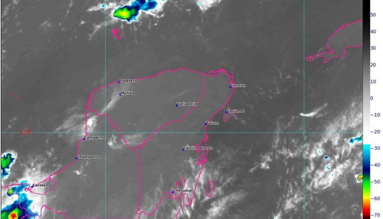 Península de Yucatán: Cielo medio nublado por la mañana y nublado por la tarde con lluvias puntuales fuertes en Campeche y Quintana Roo e intervalos de chubascos en Yucatán, todas con descargas eléctricas. Ambiente templado a cálido por la mañana y caluroso durante la tarde. Viento del este y noreste de 20 a 35 km/h.