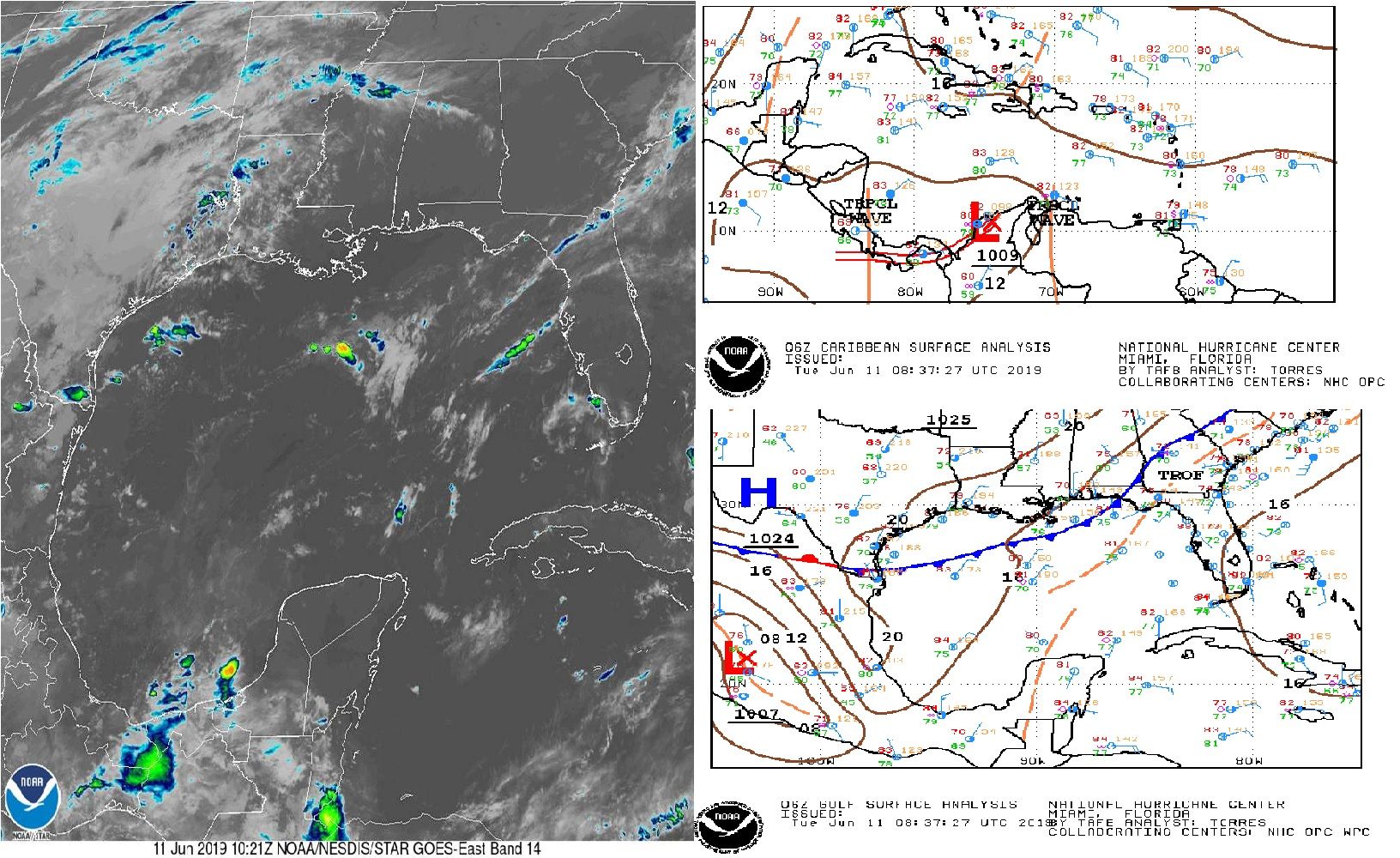 Ondas Tropicales localizadas en superficie, una en el Mar Caribe frente a las costas de Nicaragua, C.A, hasta la porción media de Costa Rica C.A.; y la otra ubicada en el occidente de Venezuela hasta el oriente de Colombia, ambas se mueven al oeste, provocan nubosidad y lluvias sobre sus áreas de influencia; no presentan condiciones favorables de evolucionar en un sistema tropical, según información del Centro Nacional de Huracanes de Miami, Florida, E.U.A.