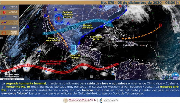 Frente frío 18 originará lluvias en el sureste mexicano.