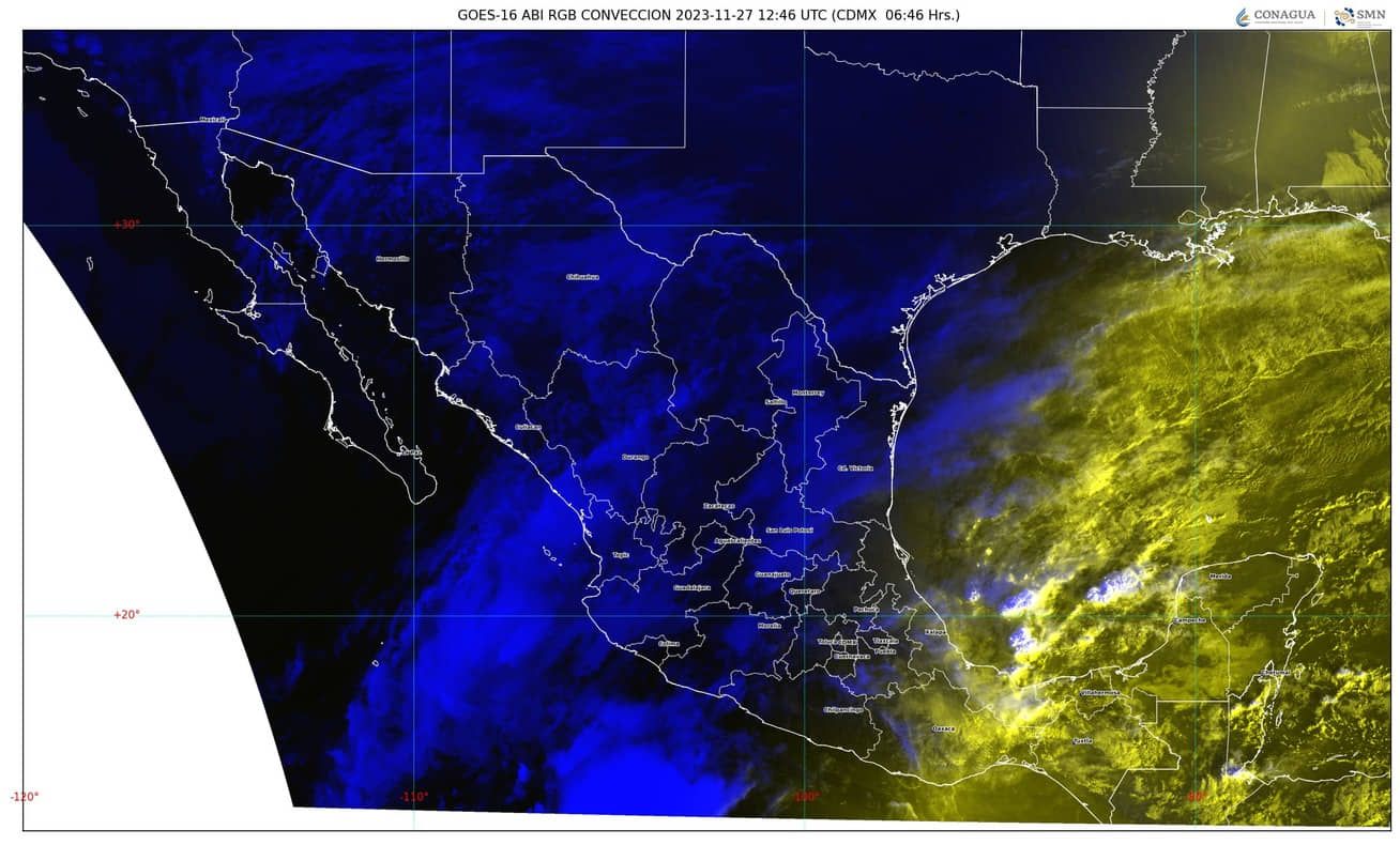 La masa de aire polar ocasionará evento de “Norte” con rachas de 80 a 100 km/h en el Istmo de Tehuantepec, con oleaje de 3 a 5 m en el litoral de Veracruz y Golfo de Tehuantepec; rachas de 60 a 80 km/h, olas de 2 a 3 m y posible formación de trombas marinas en costas de Tamaulipas.