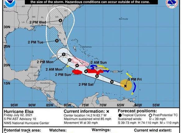 Huracán “Elsa” se mueve a través del mar Caribe hacia Cuba.