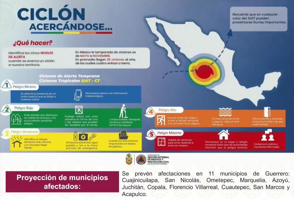 “Derivado de la intensificación del ciclón tropical se pasa de alertamiento color amarillo, es decir, peligro medio, a color naranja, peligro alto”, informó Laura Velázquez.