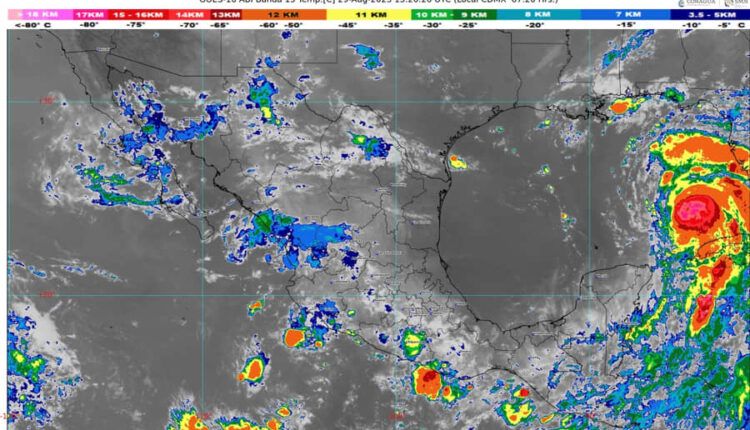 Este día, el huracán Idalia se desplazará sobre el oriente del Golfo de México, con trayectoria hacia Florida, E.U.A., su extensa circulación producirá chubascos y lluvias fuertes en la Península de Yucatán, además de rachas de viento de 40 a 60 km/h y oleaje elevado de 1 a 2 metros en la costa de Yucatán y la costa norte de Quintana Roo.