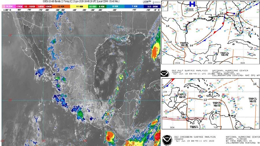A su vez, la onda tropical No. 3 se ubicará al sur del las costas del Pacífico central mexicano, reforzará el potencial de lluvias con tormentas eléctricas y posible caída de granizo en el occidente del país.