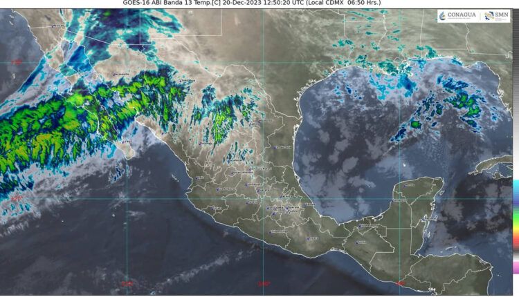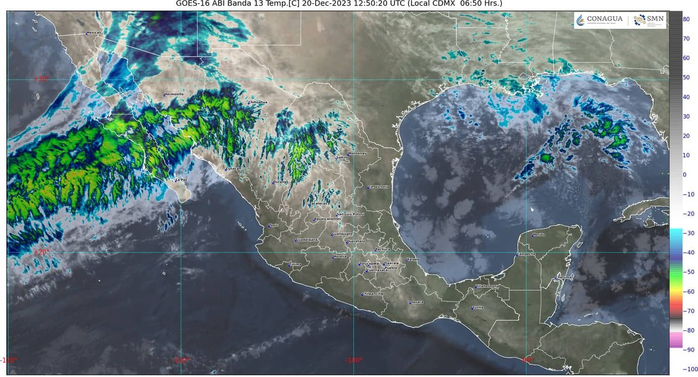 Cielo medio nublado durante el día, con chubascos vespertinos en Campeche, Yucatán y Quintana Roo. Ambiente fresco a templado durante la mañana y templado a cálido por la tarde. Viento de componente norte con rachas de 40 a 60 km/h y oleaje de 1 a 2 metros de altura en las costas de Yucatán y Quintana Roo.