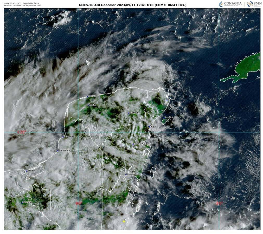 Cielo medio nublado a nublado durante el día, con lluvias puntuales fuertes en Campeche, las cuales podrían generar reducción de visibilidad, deslaves y encharcamientos, así como lluvias con chubascos en Yucatán y Quintana Roo, todas con descargas eléctricas. Ambiente templado durante la mañana y cálido a caluroso por la tarde. Viento del este de 10 a 25 km/h en la región, con rachas de 30 a 40 km/h sobre costas.