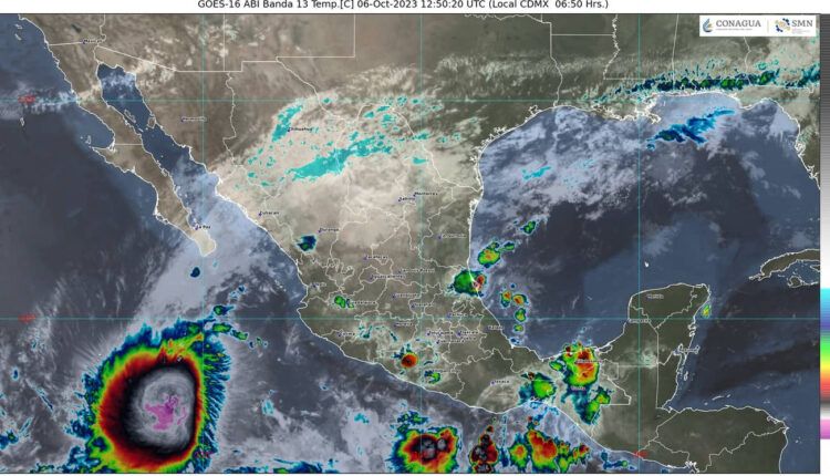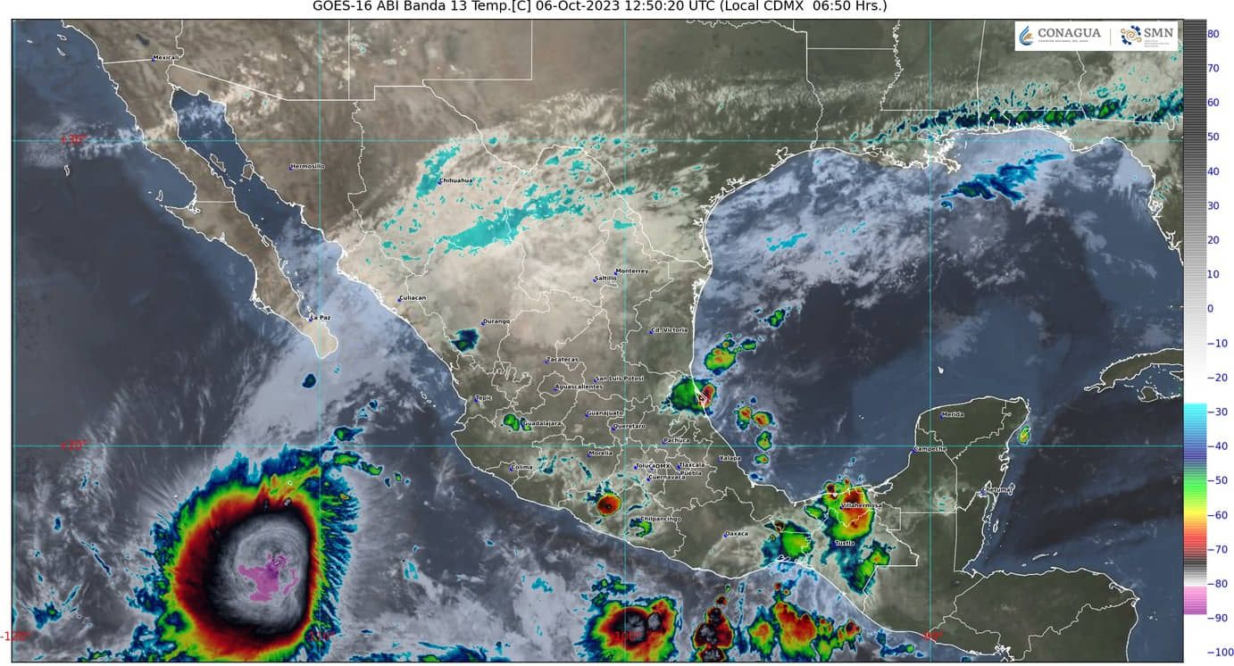 Ciudad de México, 06 de octubre de 2023.- Lluvias puntuales intensas sobre el sureste del territorio nacional. Intervalos de chubascos (5 a 25 mm)en Yucatán y Quintana Roo