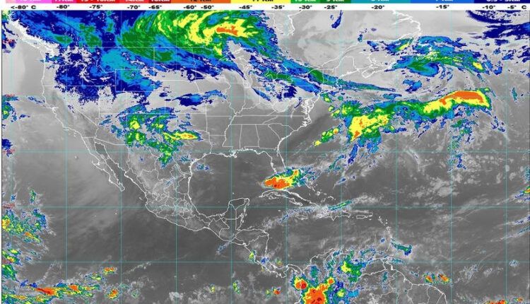 Por otro lado, un canal de baja presión, el calentamiento diurno y la entrada de humedad proveniente de ambos océanos, generarán lluvias y tormentas en el centro, oriente y sureste del Territorio Nacional.