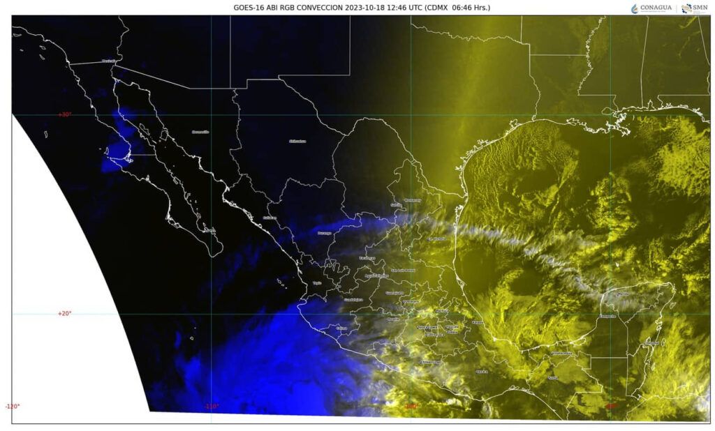 Ciudad de México, 18 de octubre de 2023.- Norma podría intensificarse a huracán categoría 1 este miércoles. Habrá temperaturas máximas de 30 a 35 °C en Oaxaca, Chiapas, Campeche, Yucatán y Quintana Roo.