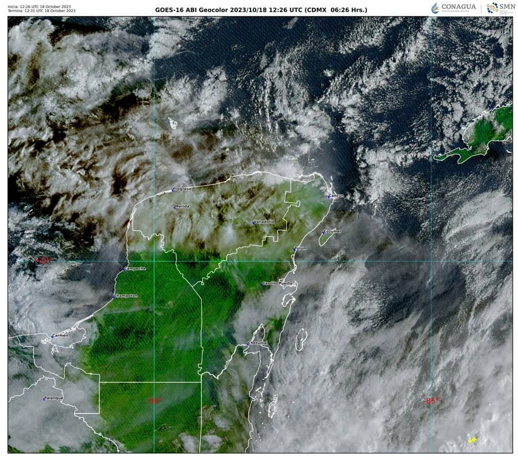 Cielo medio nublado durante el día, con lluvias aisladas en Quintana Roo y sin lluvia en el resto de la región. Ambiente fresco a templado durante la mañana y cálido a caluroso por la tarde. Viento de componente este y noreste de 15 a 25 km/h con rachas de 40 km/h.