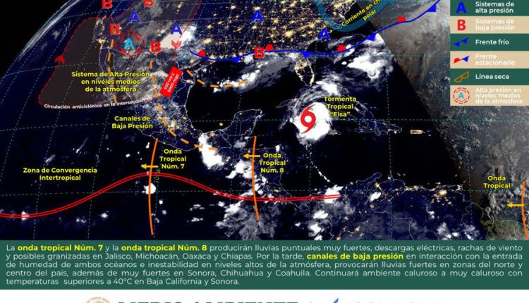 El centro de la Tormenta Tropical “Elsa”, se localiza al sur de las costas de Cuba. Por el momento no afecta al territorio mexicano. Se mantiene en vigilancia.