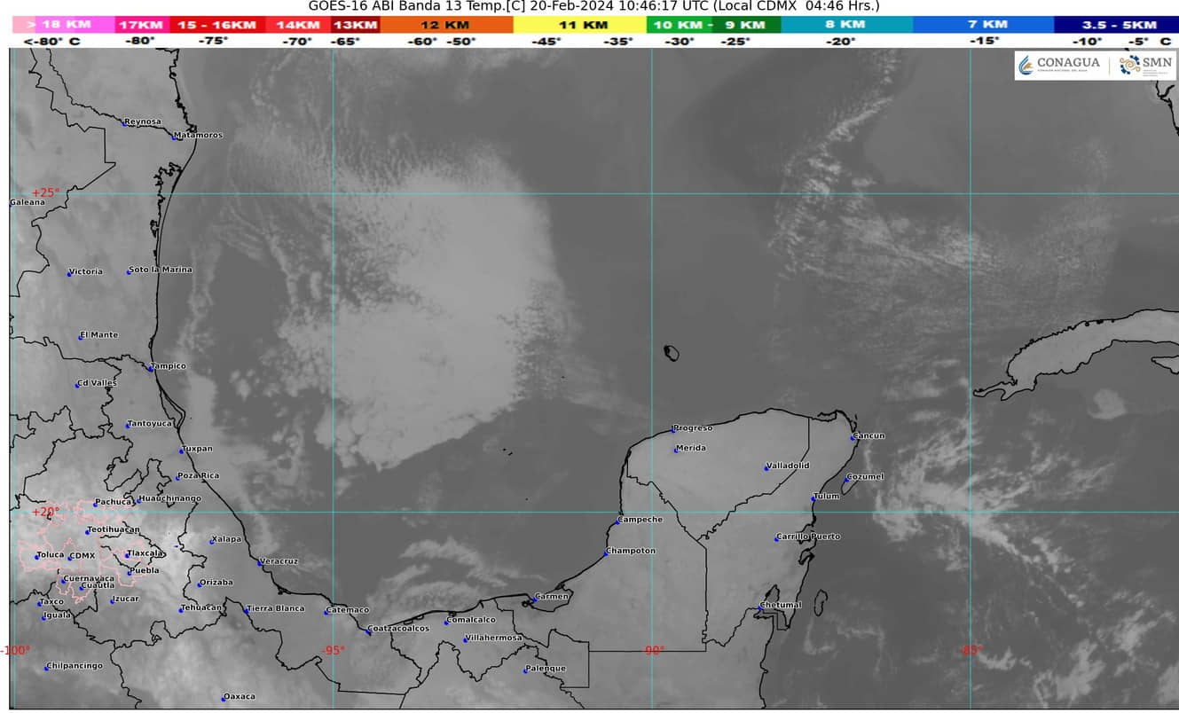 Para este martes se mantiene sistema de alta presión localizado sobre el Golfo de México, mantendrá el flujo de aire ártico modificado sobre la región peninsular y el Estado de Quintana Roo, cielo parcialmente nublado con baja probabilidad de lluvias.