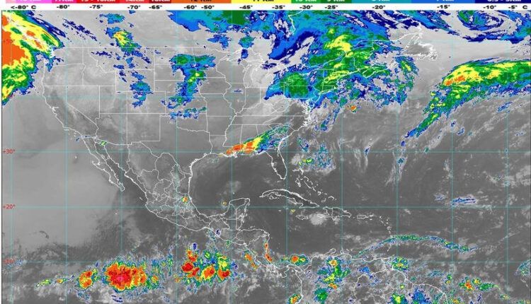 Su interacción con canales de baja presión, uno sobre el occidente del Golfo de México, otro en la Península de Yucatán y el último en el interior del país, producirá chubascos en los estados del norte y lluvias puntuales fuertes a muy fuertes acompañadas de descargas eléctricas, rachas de viento y posibles granizadas en el noreste, oriente, centro y sureste del país, incluida la Península de Yucatán.