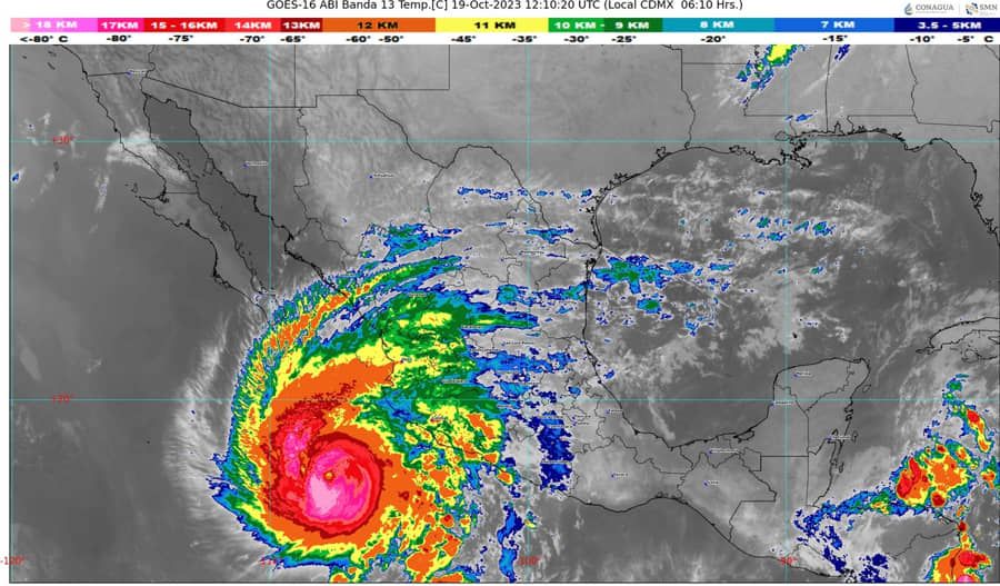 Este jueves, el ciclón tropical Norma de categoría 3 en la escala Saffir-Simpson, mantendrá su desplazamiento hacia el norte, se ubicará aproximadamente al suroeste de las costas de Jalisco y Colima, y al sur de Baja California Sur.