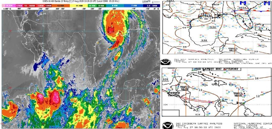 Pronóstico meteorológico para la península de Yucatán, y el Golfo de México.