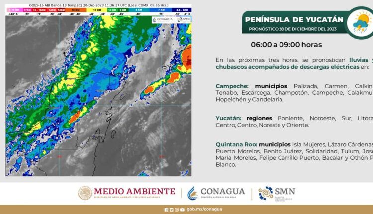 La Conagua informa que para las próximas horas se pronostican lluvias y chubascos acompañados de descargas eléctricas para todos los municipios del estado.