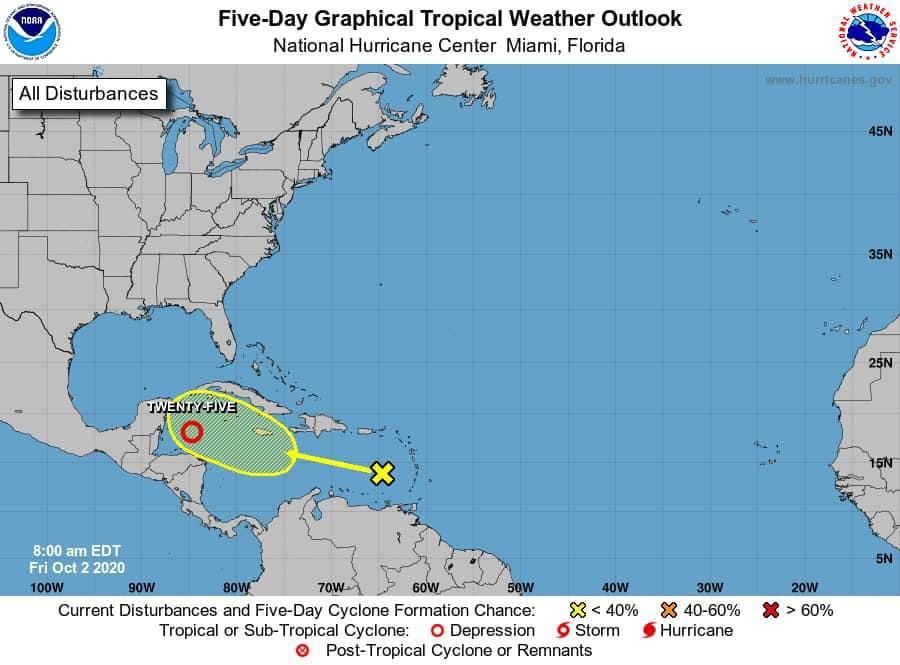 La depresión tropical 25 se formó esta mañana en el Mar Caribe a partir de una zona de baja presión.