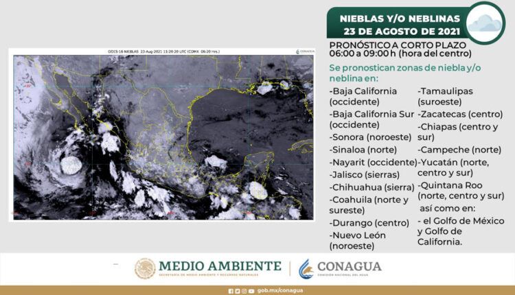 En el Golfo de México habrá cielo nublado, posible caída de granizo y descargas eléctricas. Se estima ambiente fresco con bancos de niebla en zonas serranas durante la mañana y ambiente de cálido a caluroso por la tarde, así como viento del este y noreste de 15 a 30 km/h.