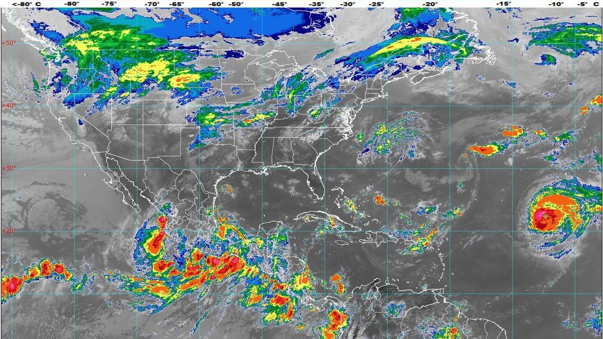 Hoy se prevén lluvias torrenciales en Guerrero y Oaxaca; intensas en Michoacán, Jalisco,Veracruz, Chiapas y Tabasco; lluvias muy fuertes en Puebla y Campeche; fuertes en Chihuahua, Durango, Sinaloa, Tamaulipas, San Luis Potosí, Nayarit, Colima, Querétaro, Estado de México, Ciudad de México, Morelos, Hidalgo, Tlaxcala, Yucatán y Quintana Roo; las precipitaciones serán con descargas eléctricas, fuertes rachas de viento y posible granizo.