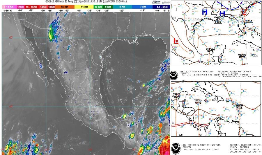 Para hoy la onda tropical No. 4 recorrerá el sureste de México e interaccionará con un canal de baja presión sobre el occidente del Golfo de México, lo que ocasionará lluvias muy fuertes en Guerrero, Oaxaca, Chiapas, lluvias fuertes en Veracruz y Tabasco, y lluvias con intervalos de chubascos en Tamaulipas y Puebla, todas acompañadas de actividad eléctrica, rachas de viento al paso de las tormentas y posibles granizadas.