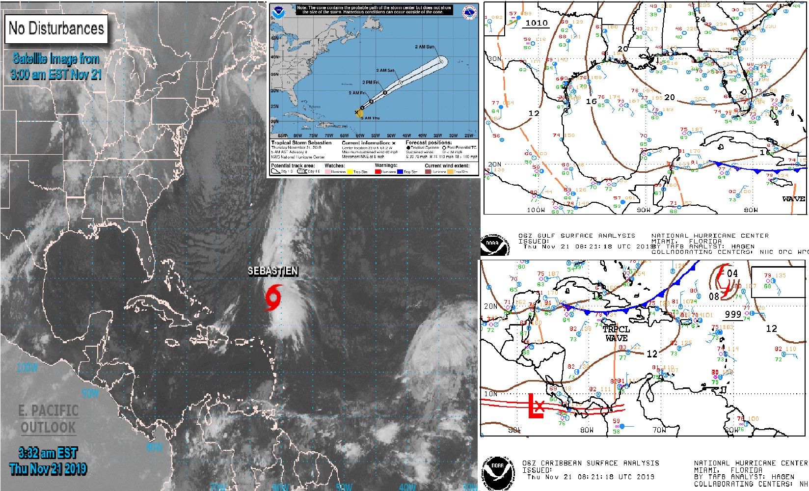 2.- Onda Tropical del Mar Caribe; localizadas en superficie, al oriente de la isla de Jamaica hasta el occidente Colombia; se mueve al suroeste provocan nubosidad y lluvias sobre su área de influencia; no presentan condiciones favorables de evolucionar en un sistema tropical, según información del centro nacional de huracanes de Miami, Florida, E.U.A.