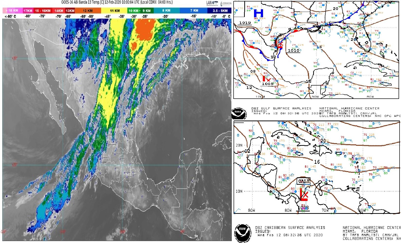 El Frente Frío No.39; localizado en superficie sobre la porción norte y noreste de la República Mexicana, noroeste y norte del Golfo de México hasta la costa este de E.U.A.; presenta condiciones casi estacionario; provocan descenso en las temperaturas, nubosidad variable y de tormenta con lluvias acompañadas de chubascos con actividad eléctrica dispersa, viento del fresco y arrachado del norte y noroeste; por el momento no afecta a la Península de Yucatán y al estado de Quintana Roo.