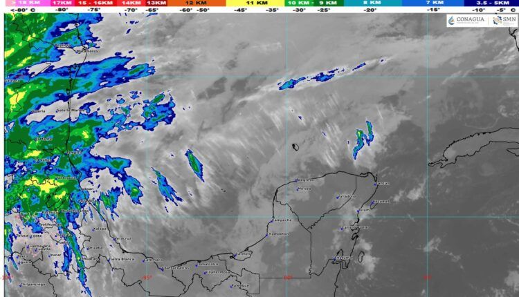 Cielo medio nublado a nublado, con lluvias y chubascos en Campeche, Yucatán y Quintana Roo. Ambiente fresco a templado al amanecer y cálido por la tarde. Viento de componente este de 15 a 30 km/h en la región.