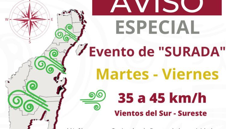 La Coordinación Estatal de Protección Civil informó que tendremos viento este martes en el estado de Quintana Roo debido a la surada que permanecerá los próximos días.