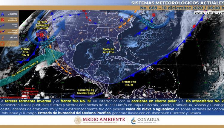 Para hoy, la tercera tormenta invernal y el frente frío No. 19, se desplazarán sobre el noroeste y norte de México.