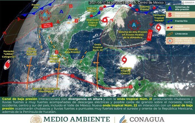 Así lo dio a conocer el Servicio Meteorológico Nacional (SMN), quien advirtió en su reporte que los efectos de “Grace” comenzarán a sentirse en el sureste de México a partir de este miércoles.
